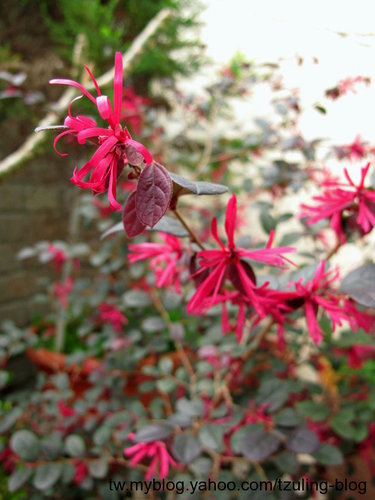 記得初見時未臨花期 被吸引的是那整株酒紅色的灌木葉